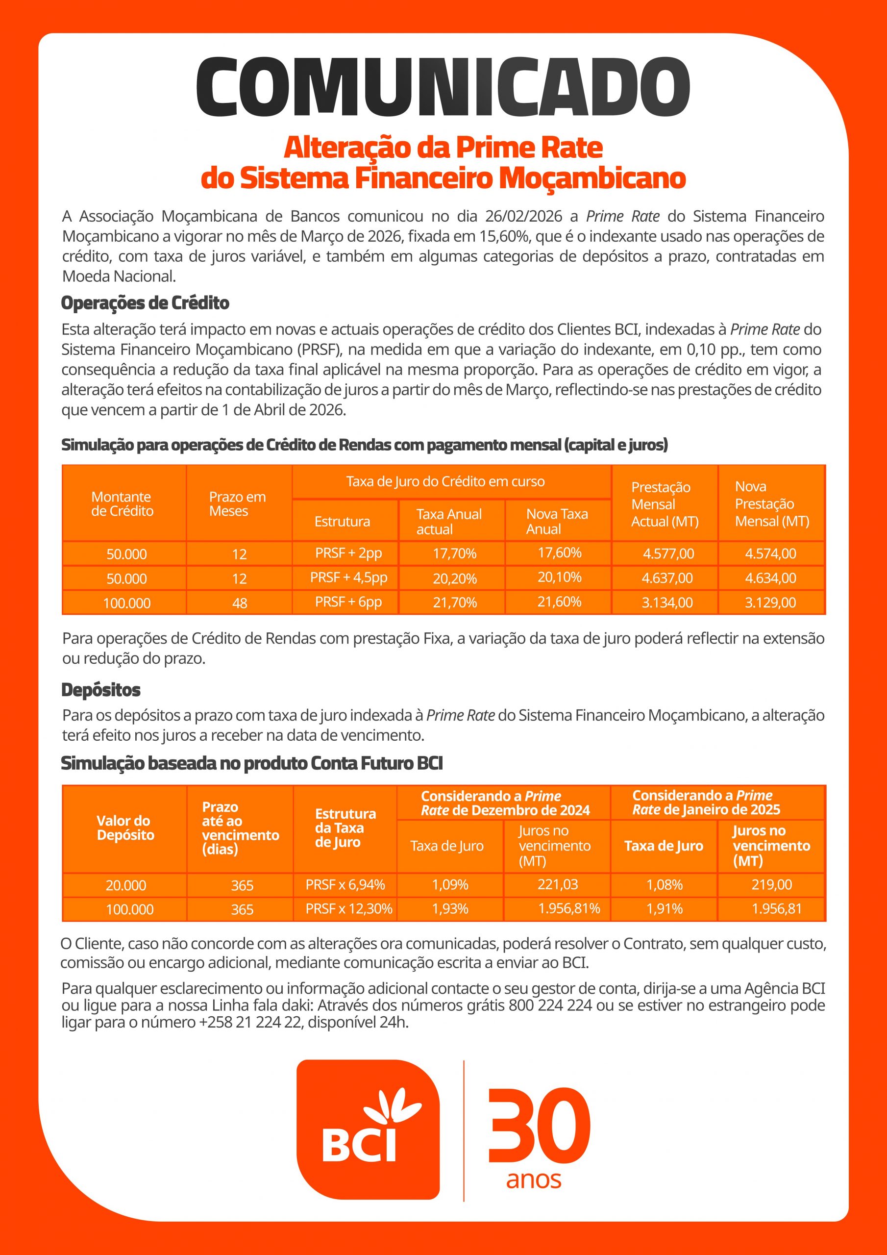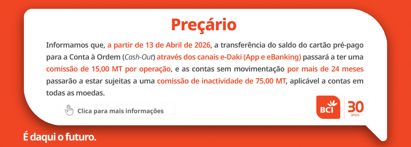Calculada com base no Spreads Padronizados de Taxas de Juro praticadas pelo BCI, adicionado à Prime Rate do Sistema, por categoria de Créditos.